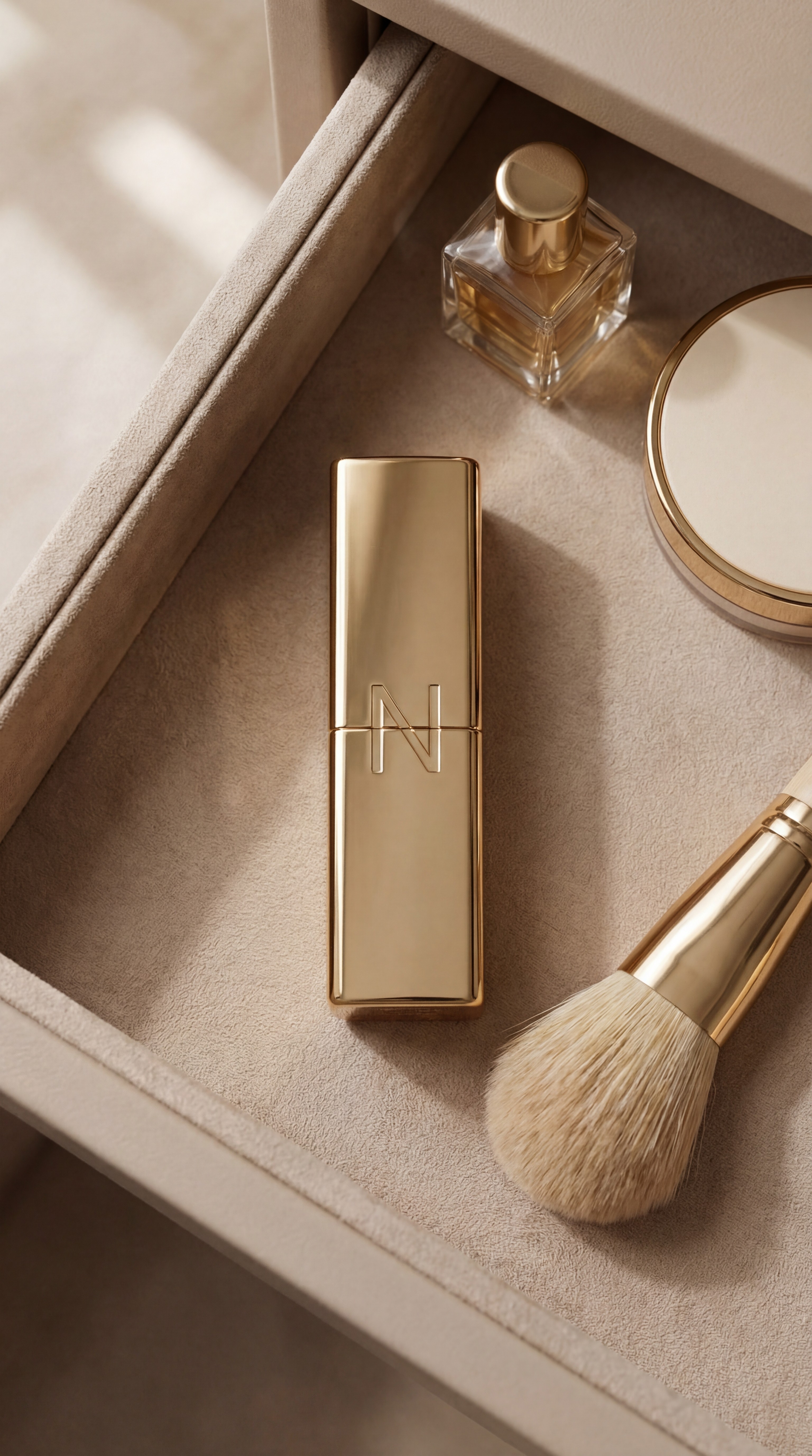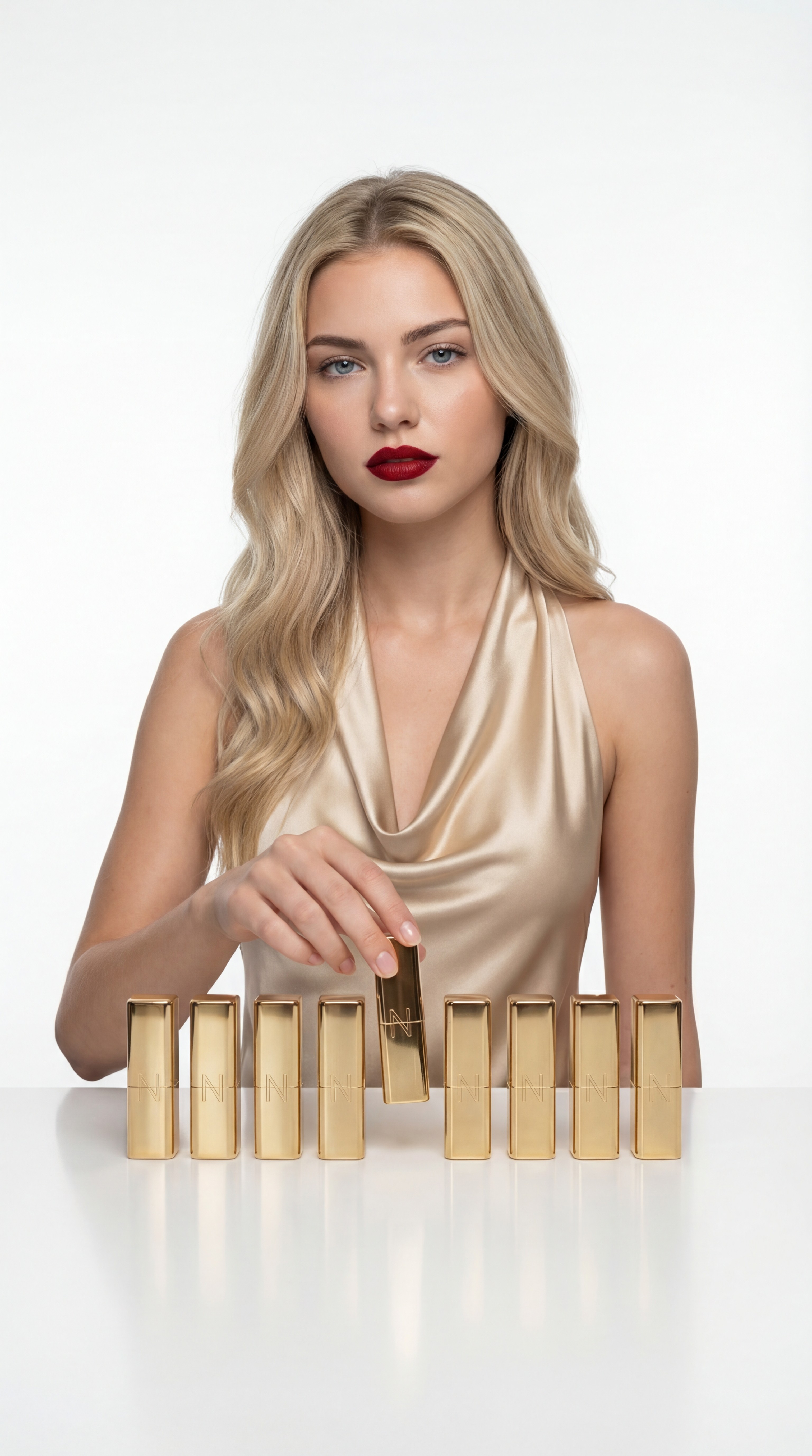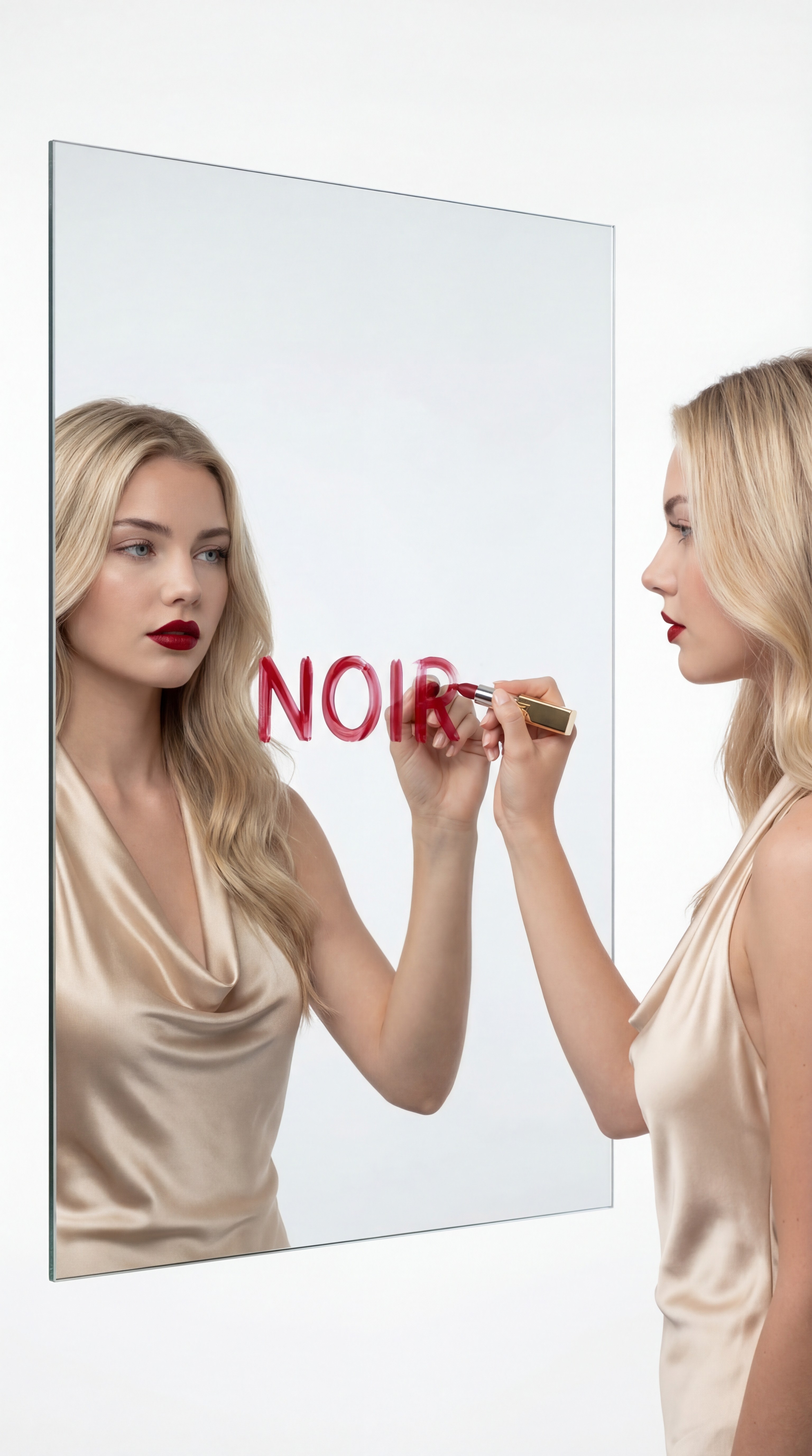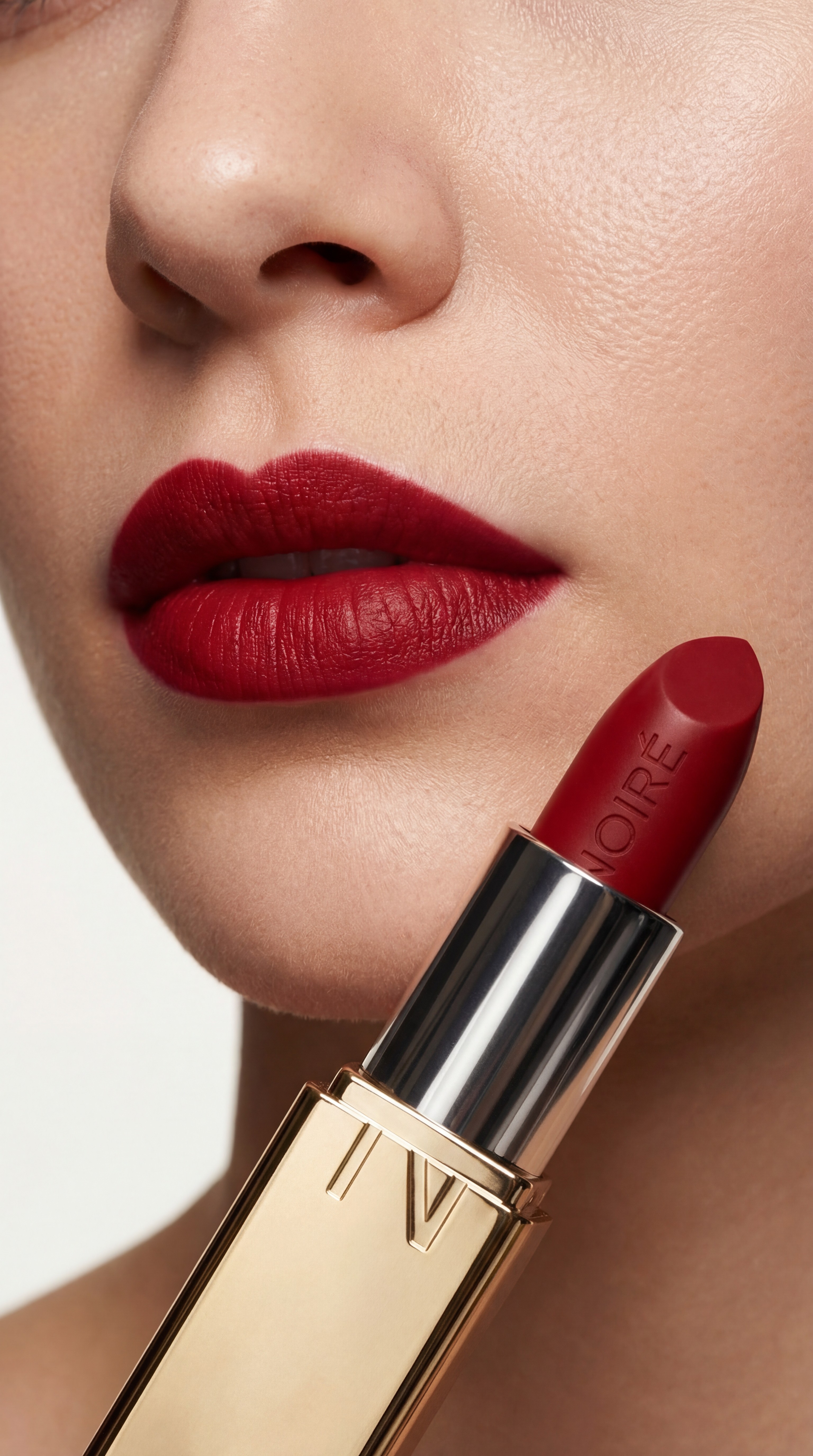 Noire is a modern luxury lipstick brand defined by precision, power, and timeless elegance. Encased in polished gold packaging with a sculpted embossed bullet, the product embodies refined minimalism and bold femininity. The visual direction focuses on clean studio lighting, dramatic shadows, and ultra close macro detail to highlight texture, pigment richness, and craftsmanship. The deep red shade represents confidence, classic yet commanding, positioned as an essential statement piece for everyday sophistication. Noire is beauty distilled: intentional, elevated, and unmistakably iconic.
